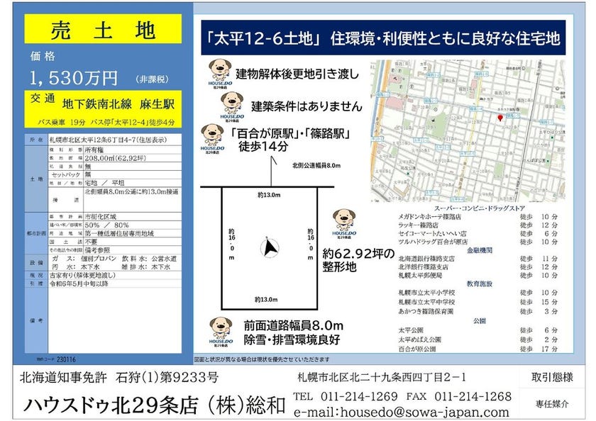 ハウスドゥ北29条より新規で売却活動を開始致しました【売土地】のご案内です♪♪ こちらをクリックして是非ご覧下さいませ!(^^)! 生活利便性も良く、おすすめの物件です!!! ⇒...
